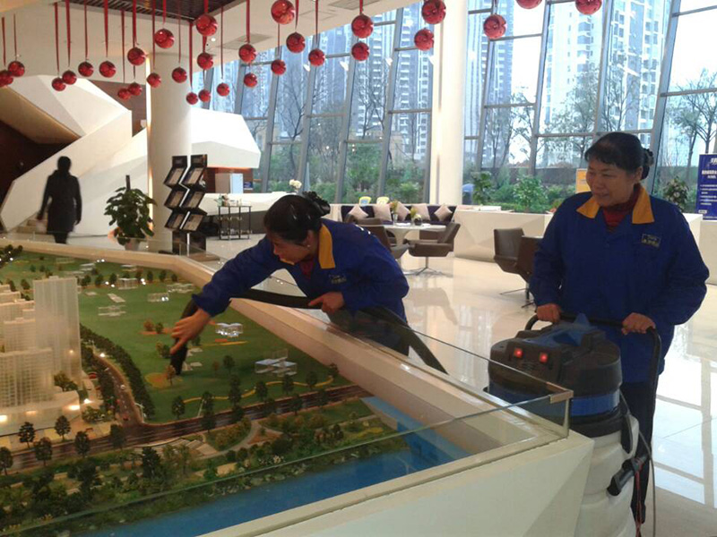 保潔員對(duì)沙盤進(jìn)行保潔